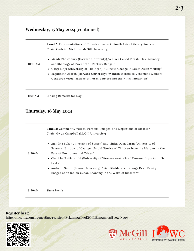 Please find the schedule below for the “Visual Portrayals of Environmental Crises in the Indian Ocean World, Past to Present” Conference.