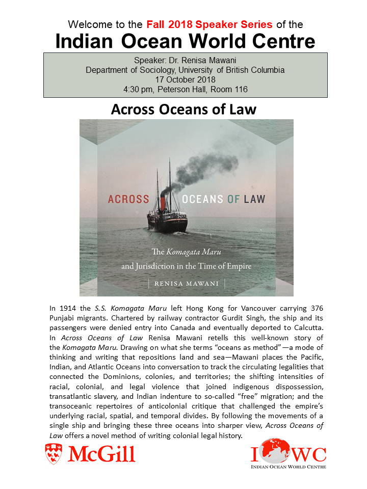 - 17 October: Renisa Mawani (University of British Columbia), Across Oceans of Law