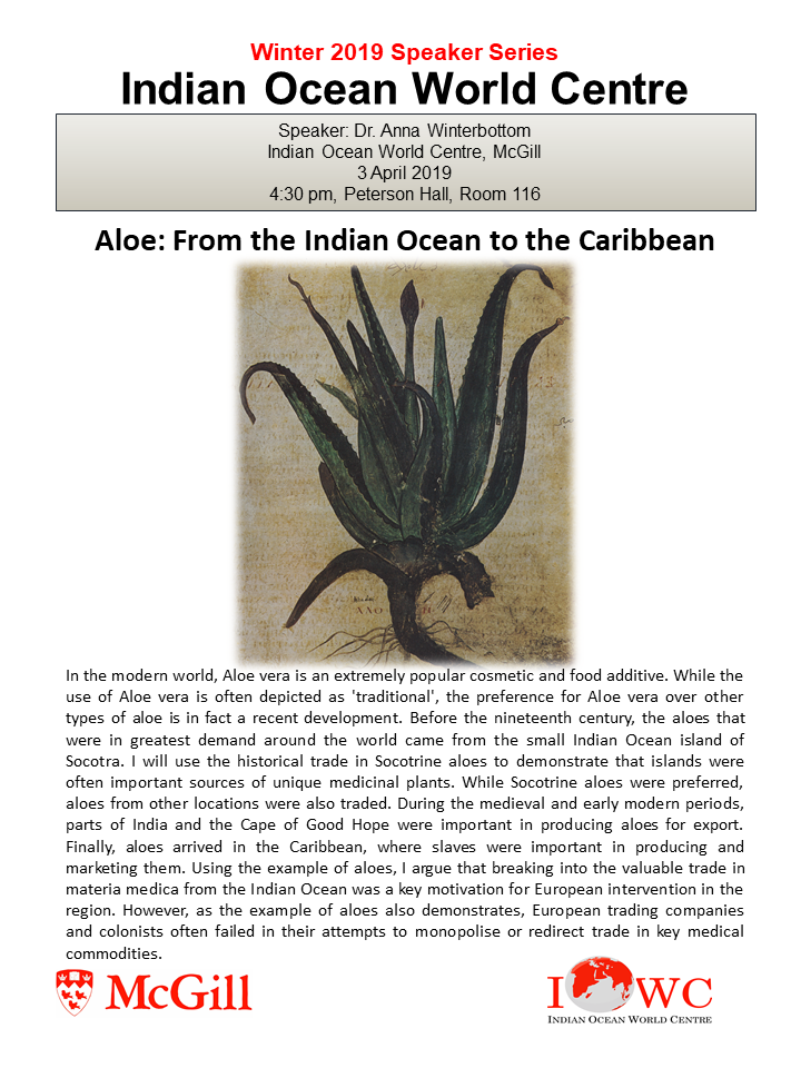 - 3 April: Anna Winterbottom, IOWC, Aloe: From the Indian Ocean to the Caribbean