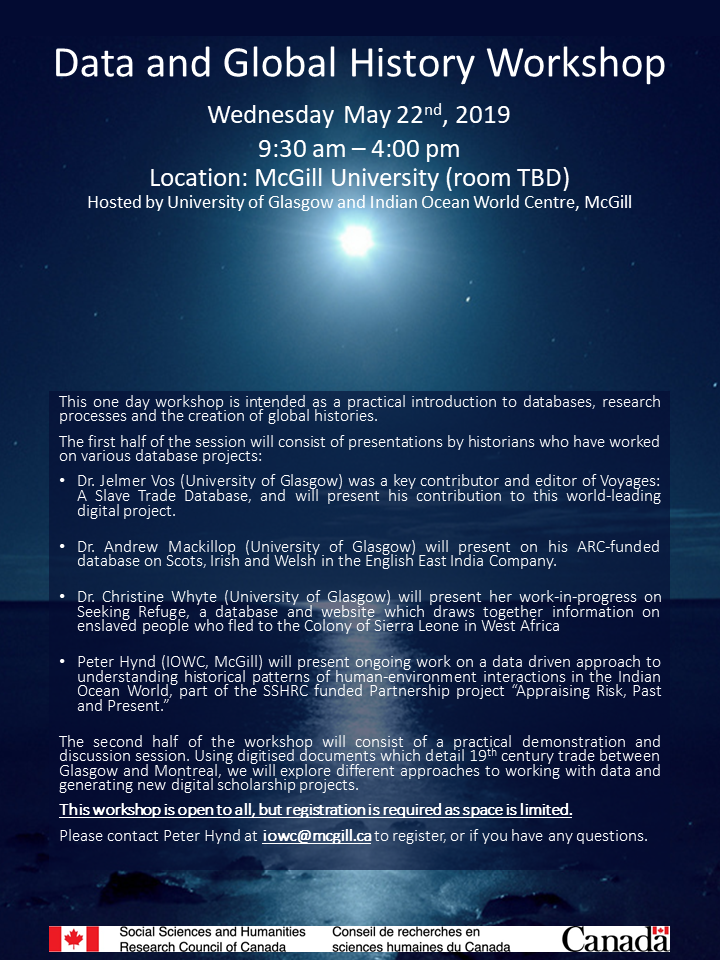 2019 Data and Global History Workshop, McGill University and University of Glasgow, Montreal (Program Available Here)